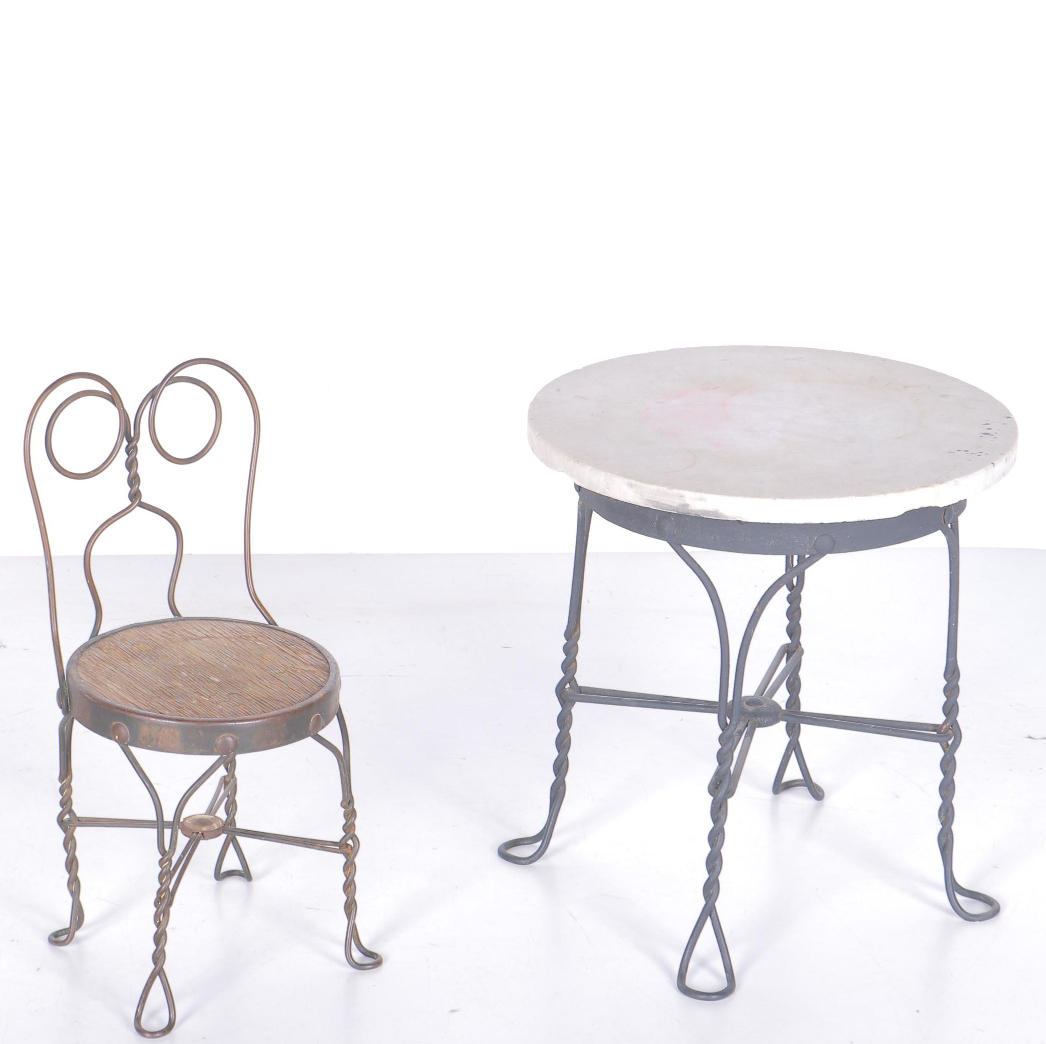Vintage Ice Cream Parlor Set Chairs Table Bistro Shop Twisted Iron Sweetheart Ebay